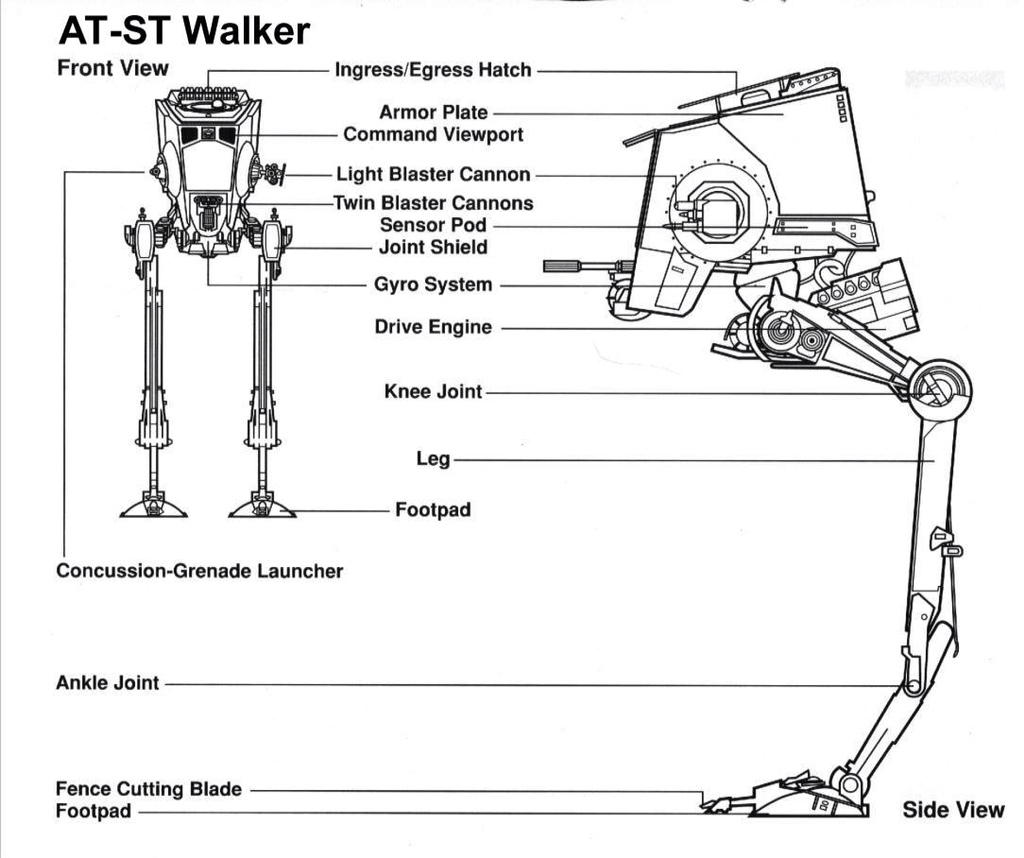 It has come to my attention that recent testing of the AT-ST walker has been abyssmal. As I understand it, the firepower is tremendous in such a small package, but there are other things that is has failed in that should have caused the Empire to make a pass on this technology. Being two legged has some definite advantages for mobility, but only if you can manage to keep it on two legs. Recent test have shown that a simple pile of logs can trip this vehicle up, causing massive explosions in the cabin when it falls.